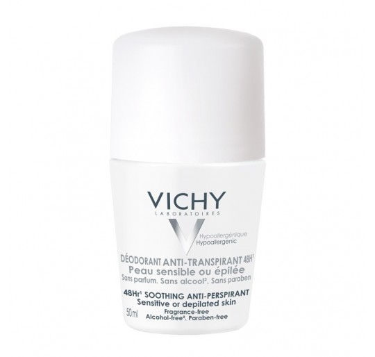 Vichy Desodorante Bola Piel Sensible 50 ml: Desodorante para pieles muy sensibles. Regula la transpiración y reduce las molestias de la piel durante 48 horas.