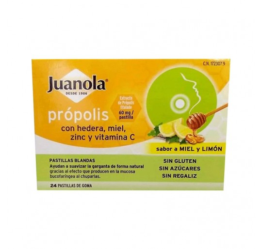 Edulcorantes: jarabe de sorbitol, jarabe de maltitol; gelificante: gomar arábiga; extracto de propóleos (3%); acidulante: ácido cítrico; extracto de hojas de hiedra (Hedera helix) (0.6%); aromas; miel (0,5%); ácido L-ascórbico (vitamina C 10.5%); citrato de zinc; extracto de raíz de cúrcuma; edulcorantes: sucralosa y acesulfamo potásico; agente de recubrimiento: cera carnauba.