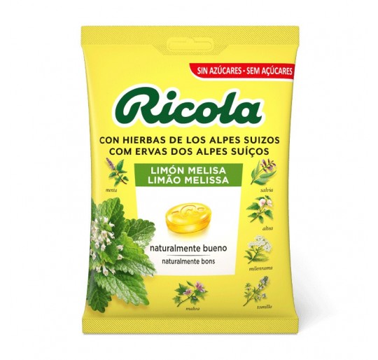 Azúcar, jarabe de glucosa, humectante (glicerina), jarabe de glucosa y fructosa, miel (1.3%), zumo de limón concentrado (0.5%), extracto (0,5%) y de la mezcla de hierbas Ricola (menta piperita, hisopo, melisa, flor de tilo, serpol, tomillo, salvia, malva, saúco, marrubio), aromas naturales, acidulante (ácido cítrico), mentol (0.24%), colorante (beta-caroteno).