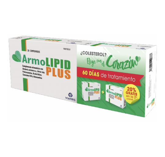 ARMOLIPID PLUS es un complemento alimenticio en forma de comprimidos que ayuda a mantener niveles saludables de colesterol y triglicéridos. Su fórmula se basa en ingredientes naturales como la levadura roja de arroz, la berberina, la coenzima Q10 y la astaxantina. Estos ingredientes trabajan en conjunto para regular los lípidos en el organismo, proteger la salud cardiovascular y proporcionar antioxidantes para proteger las células. Se recomienda tomar 1 comprimido al día durante la comida principal. ARMOLIPID PLUS no debe sustituir una dieta equilibrada ni un estilo de vida saludable, y es importante consultar a un profesional de la salud antes de comenzar cualquier suplemento. Pack especial de 2 envases de 30 comprimidos.
