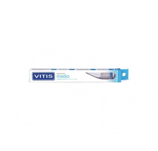 Es un cepillo con filamentos de dureza media diseñado especialmente para eliminar eficazmente el biofilm oral (placa bacteriana). Vitis medio es un cepillo de uso diario con un cabezal de forma diamantada que permite llegar a las zonas de difícil acceso de la cavidad bucal. Sus filamentos de dureza media y con perfil ondulado, acceden a los espacios interdentales, a la vez que facilitan la limpieza en el contorno de las encías