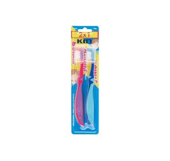 Para niños entre 6 y 12 años, el cepillo de dientes KIN Junior presenta un cabezal más pequeño y triangular que permite llegar a las zonas de más difícil acceso. Ambos cepillos incorporan un capuchón protector.