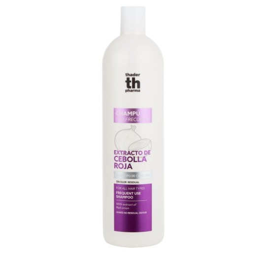 El champú de la línea de Cebolla Roja de Thader TH Pharma es un champú suave que estimula el crecimiento del cabello. Además, este producto aporta brillo y suavidad al pelo, mejorando su aspecto y vitalidad. Otra de las ventajas de este champú es que no deja olor residual.