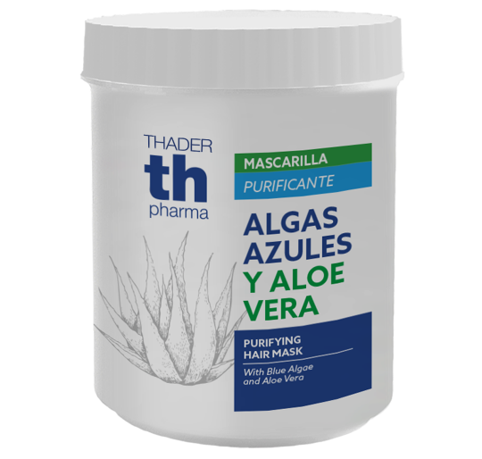 La mascarilla purificante, con Algas Azules y Aloe Vera, nutre el cabello en profundidad.