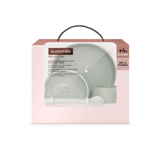 Vajilla de silicona 4 piezas con ventosa resistente para bebés +4M.Formado por bol + plato + taza + cuchara.
