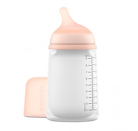 Biberón anticólico con tetina de lactancia.