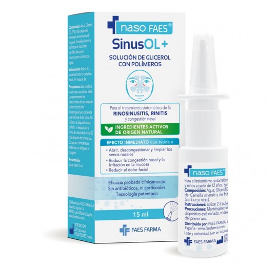Nasofaes Sinusol 15 Ml. Spray para la congestión nasal, rinosinutisis y rinitis, y aliviar las molestias de presión intrasinusal y el dolor facial derivado.