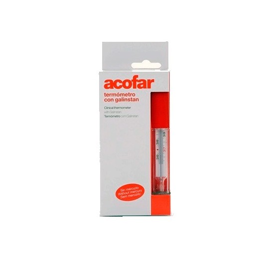 Termometro Clinico De Galinstan. El Termómetro Acofar con Galinstan es un mecanismo diseñado para la medición de temperatura corporal totalmente libre de sustancias tóxicas como el mercurio, pero con la misma efectividad de este. Acofar ha desarrollado un producto totalmente seguro ya que de llegar a romperse, el líquido que contiene no afecta a la piel ni a ningún tejido con los cuales pueda entrar en contacto.