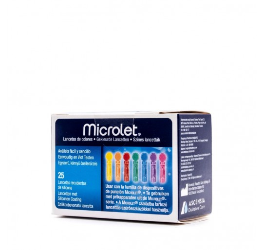 Son lancetas revestidas de silicona. Para usar con la familia de dispositivos de punción Microlet. Es un producto de Ascensia Diabetes.