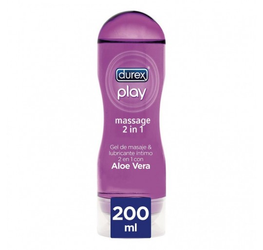 Durex Play Massage Hidratante Gel de masaje 200ml Disfruta usándolo para hacer un masaje relajante y puedes utilizarlo también como lubricante para zonas íntimas. Play Massage 2en1 contiene Aloe Vera conocido por su suavidad y es perfecto para mejorar el masaje.