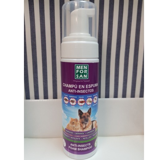 Limpia y actúa en cualquier parte del cuerpo y del pelaje de perros y gato sin utilización de agua. La espuma contiene 3 activos naturales, MARGOSA, GERANIOL y LAVANDINO que funcionan como repelentes de infestaciones de todo tipo de insectos parásitos y voladores (pulgas, garrapatas, chinches, ácaros y mosquitos).
